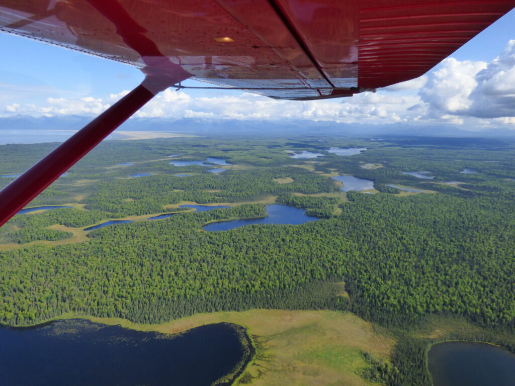 Departing from Lake Hood, Anchorage, fly over Cook Inlet, the Alaska Range, remote islands, before landing on either Brooks or Naknek Lake in Katmai National Park and Preserve. Katmai is home to the world’s largest population of Alaska brown bears and the famed Valley of Ten Thousand Smokes – a forty square mile, 100 to 700-foot deep ash flow deposited by Novarupta Volcano in 1912. It should be mentioned that the smokes smoked out many years ago and the few smoking vents are only visible in a relatively inaccessible part of the park.